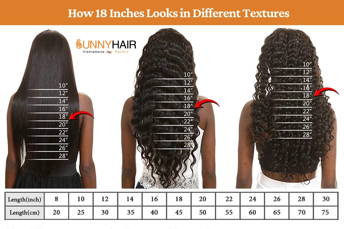 Hair texture plays a huge role in how long 18 inches appears on your body. Even though all textures measure the same length when stretched, each behaves differently in its natural state.